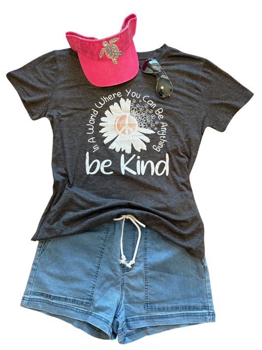 Be Kind - Peace & Daisy Floral Graphic Crewneck Tee