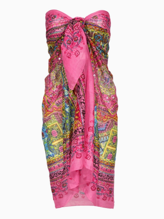 Fuchsia Beach Wrap - Metallic Thread Embroidered, Boho Sarong
