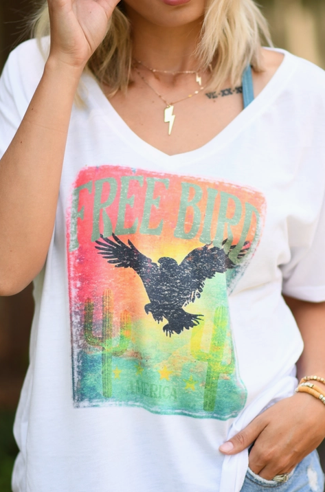 Free Bird - Off the Shoulder, Slouchy, V-neck Ladies Tee