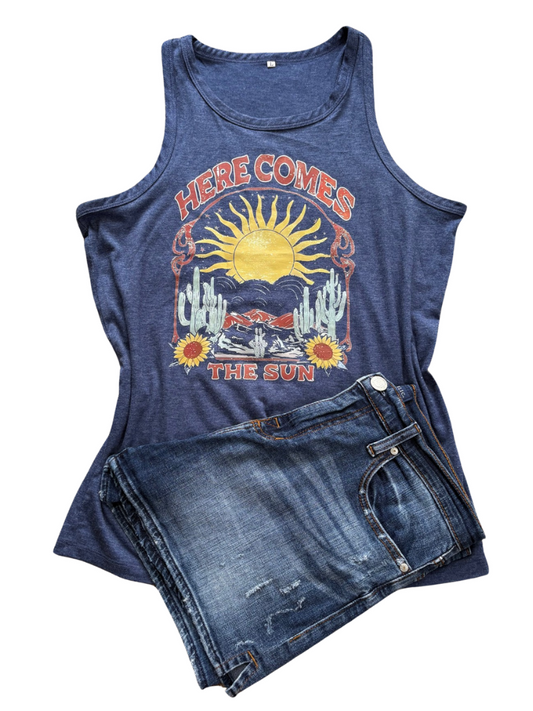 Vintage Sun with Floral Design Racerback Ladies Tank