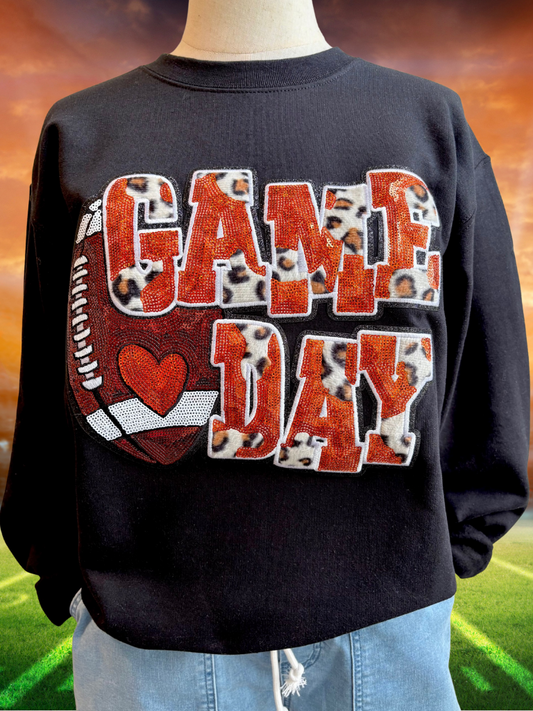 Orange Sequin and Leopard Print Faux Fur Game Day Sweatshirt