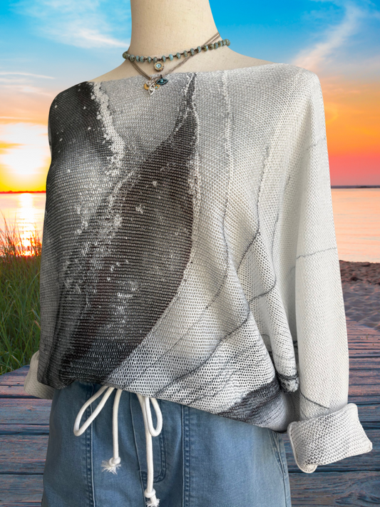 Shades of Grey Tie Dye, Round Neck, Loose Knit Ladies Sweater