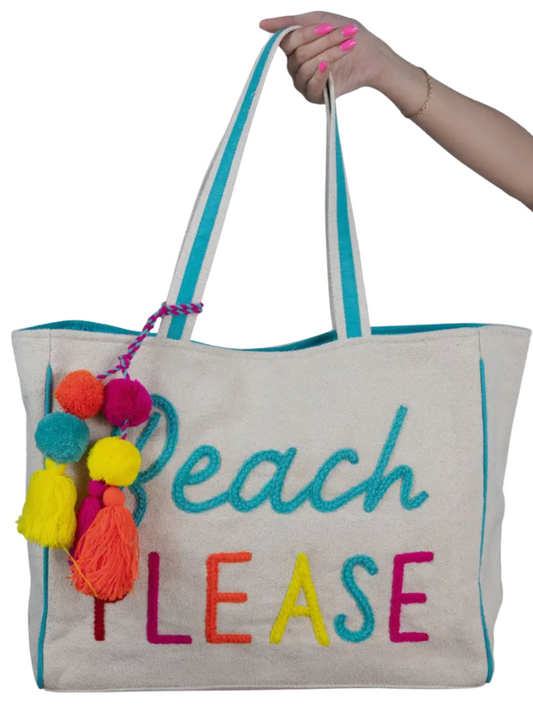 Beach Please - Rope Lettering Detail Beach Tote Bag