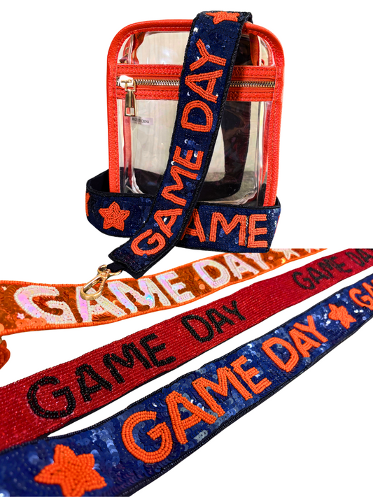 Game Day Spirit - Blue Sequin and Orange Beads, Removable Purse Strap