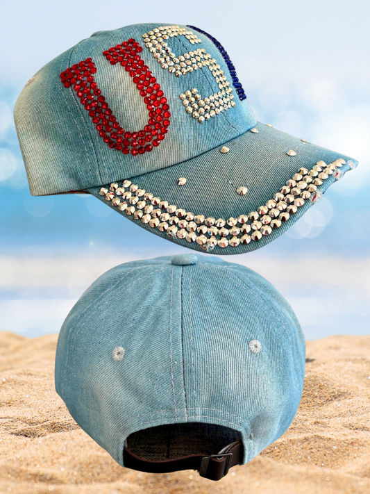 U.S.A. Rhinestone Studded Ladies Denim Hat