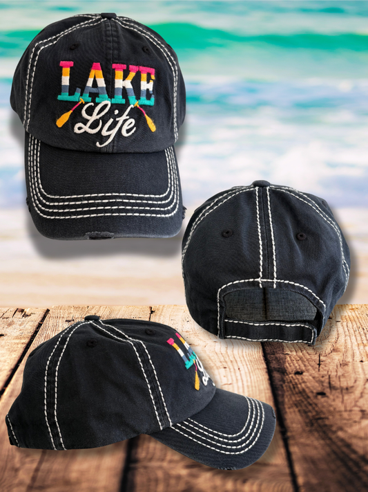 Lake Life Vintage, Multi-Colored Embroidery, Low Profile Ladies Hat
